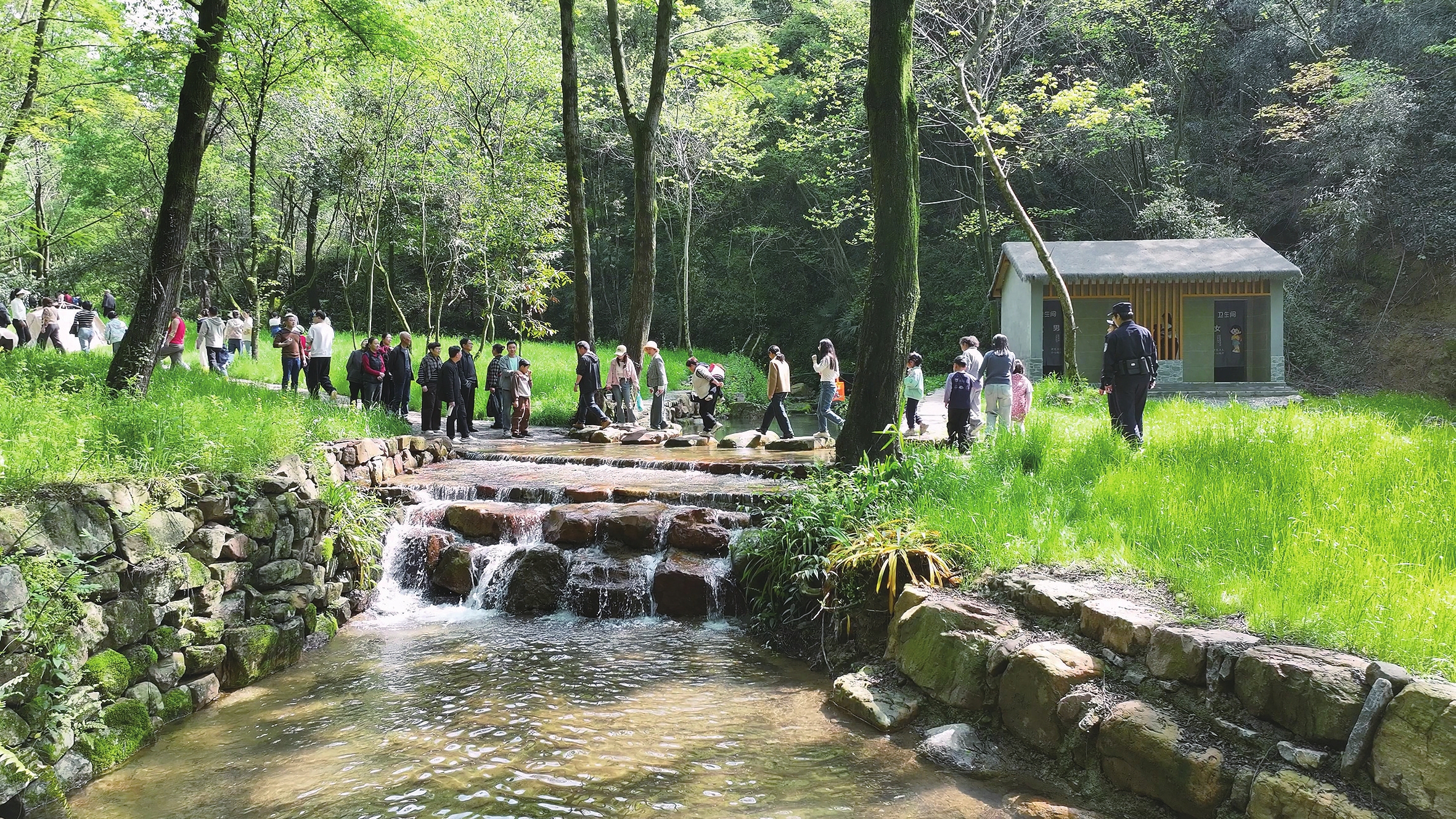 与此同时,龙腾沟基地正式开园迎客。伴着歌声,游客们沿着溪流一路向山谷深处探去。据悉,作为新打造的森林康养胜地,龙腾沟以“天然氧吧”为特色,林木葱茏、溪水潺潺,气温比外界低5—8℃,是露营、徒步、戏水的绝佳去处。(记者孙玉敏)