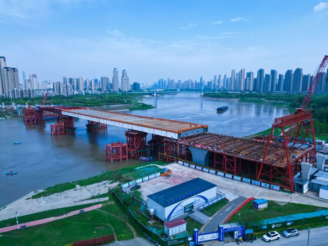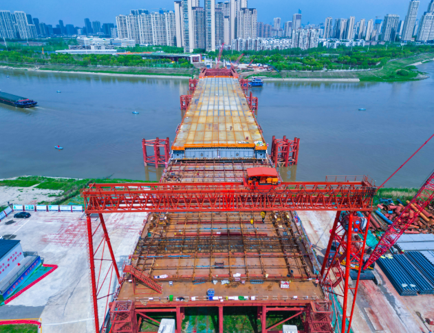 随着第四轮钢箱梁顶推完成,武汉江汉十桥项目钢箱梁顶推日前顺利过半,这座跨汉江大桥预计明年7月建成通车。