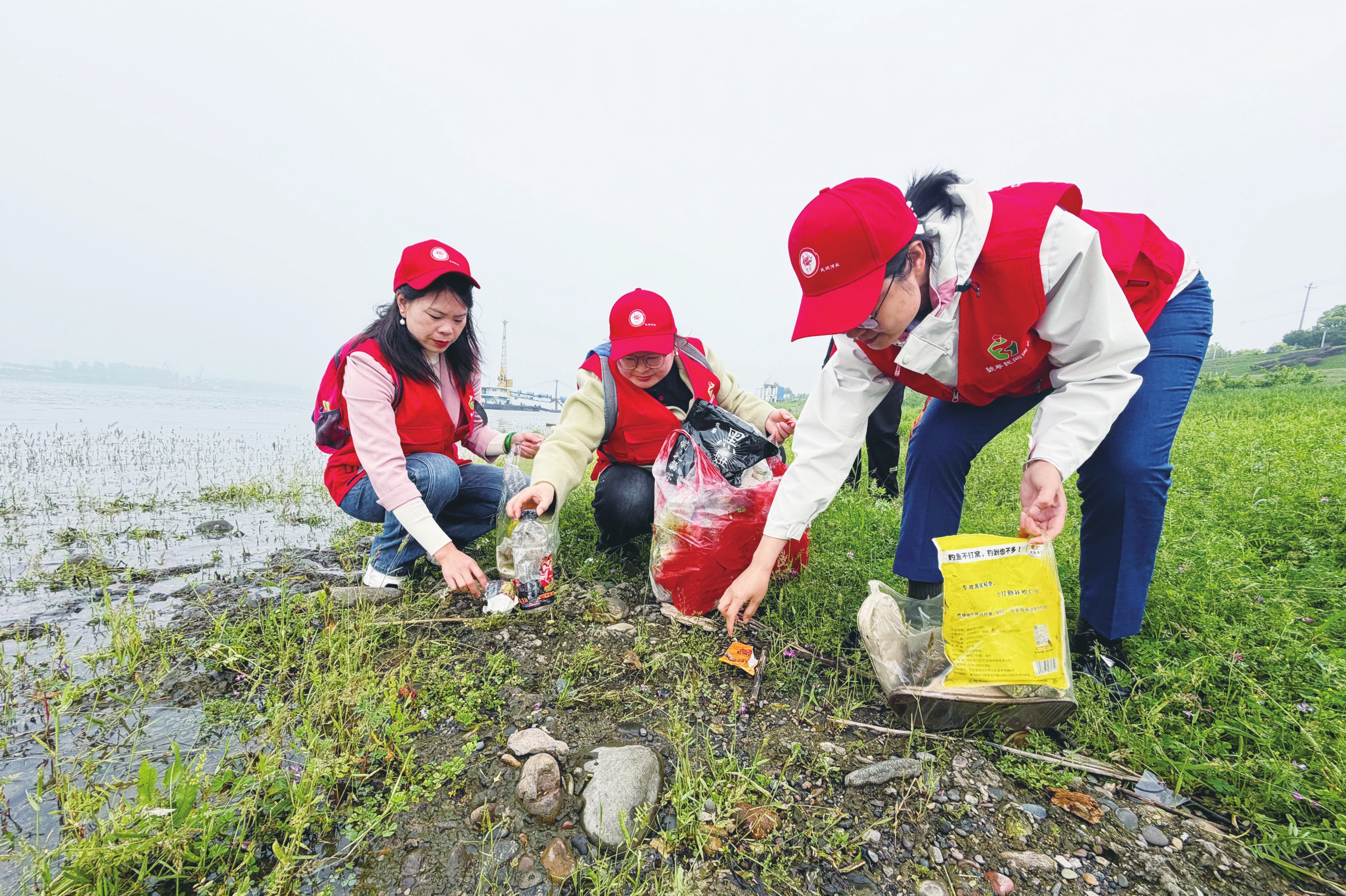 4月15日,时值全民国家安全教育日,猇亭区护江巡河志愿者身着“志愿红”,手持清洁工具,沿长江岸线中华鲟自然保护区猇亭段开展巡河护江行动。其间,他们向附近居民普及分享生态安全知识,捡拾岸线垃圾、排查水域隐患、观测水质情况,用行动和担当,守护长江碧水安澜。(记者熊小磊、周琤欣,通讯员周爱华 摄)