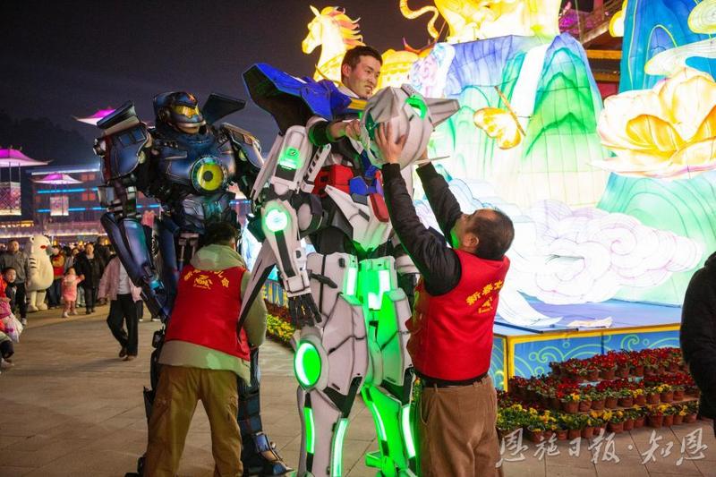新春女儿会工作人员穿戴机器人设备。