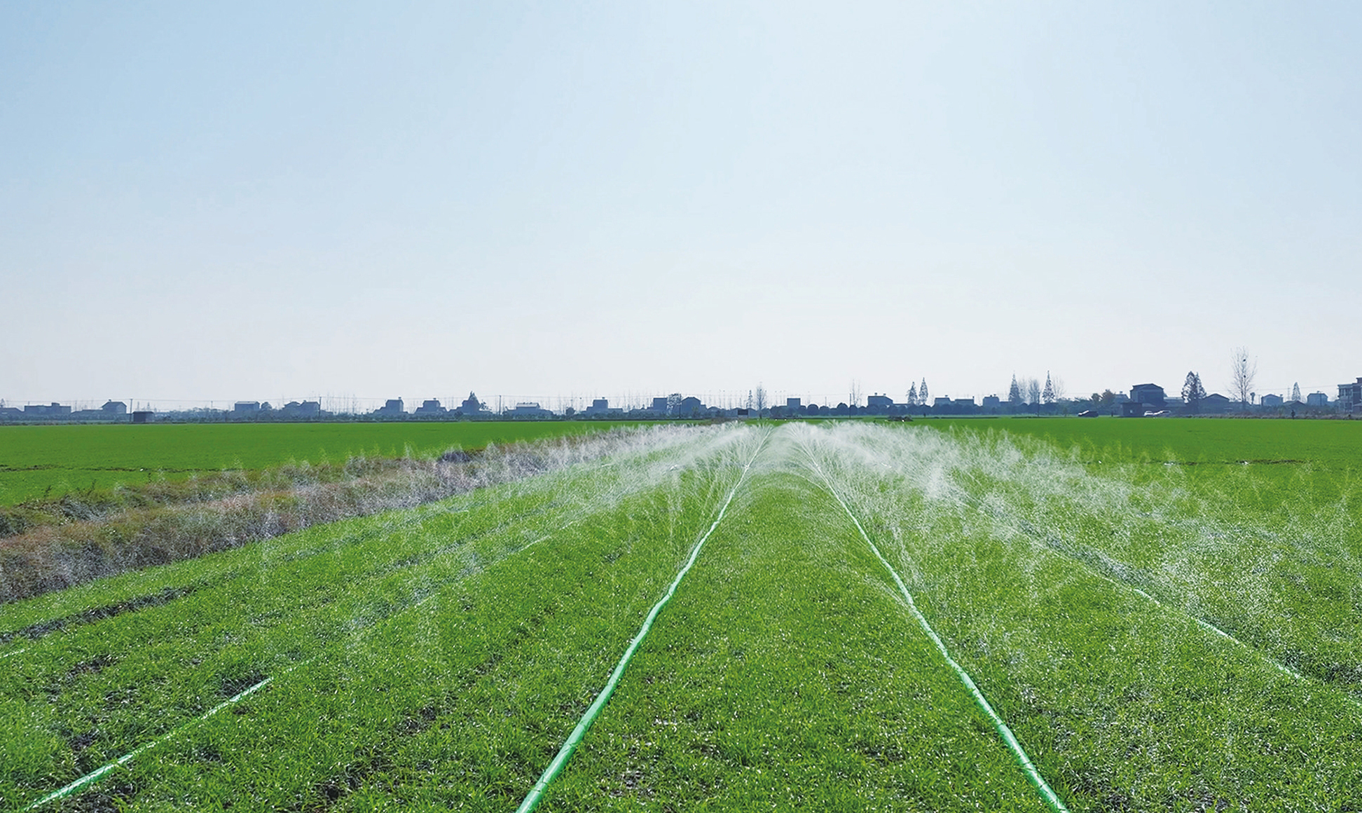 枝江市百里洲镇,微喷灌溉润泽麦田,节水技术让管护更智慧。(记者杨一航 摄)