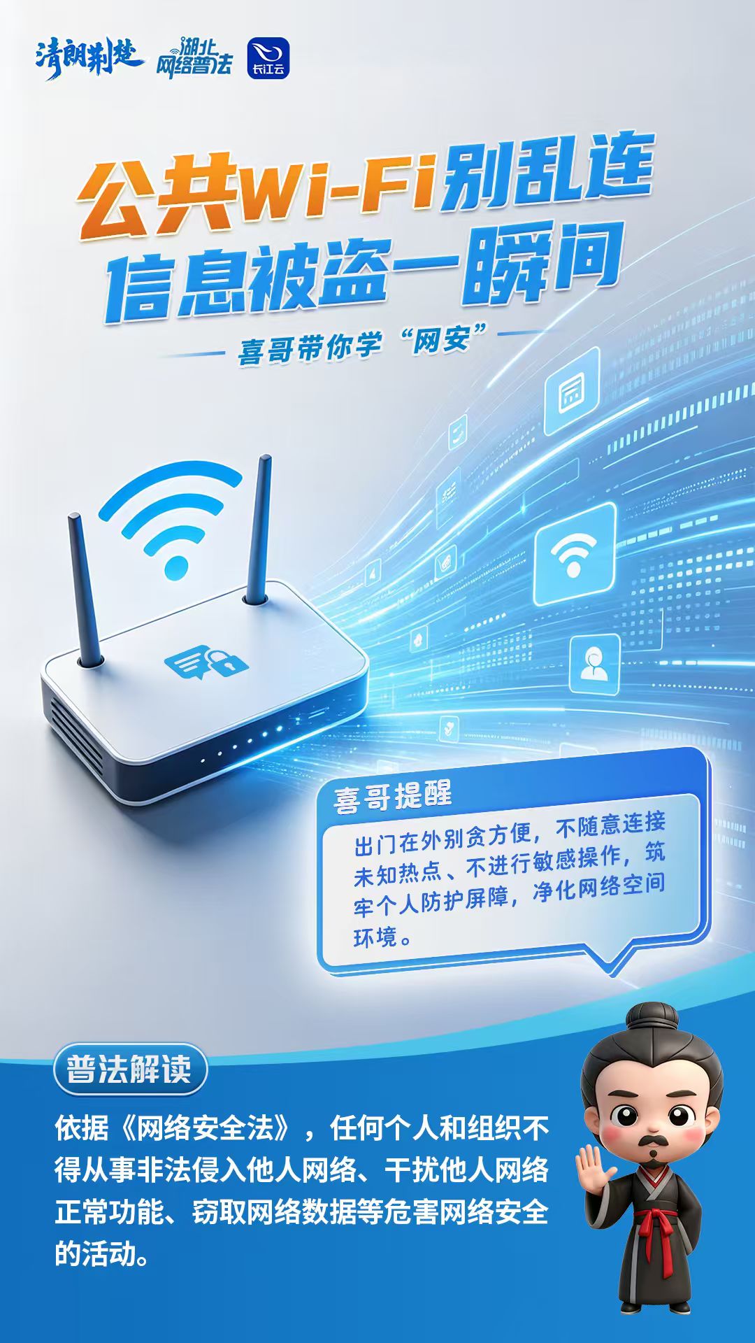 网络连着你我他,安全防范靠大家!“喜哥普法”聚焦网络安全九大高频词,用法律划底线、用提醒护安全,让大家不踩坑、不越界、不违法,安全上网、依法上网,让网络更安心、生活更放心!