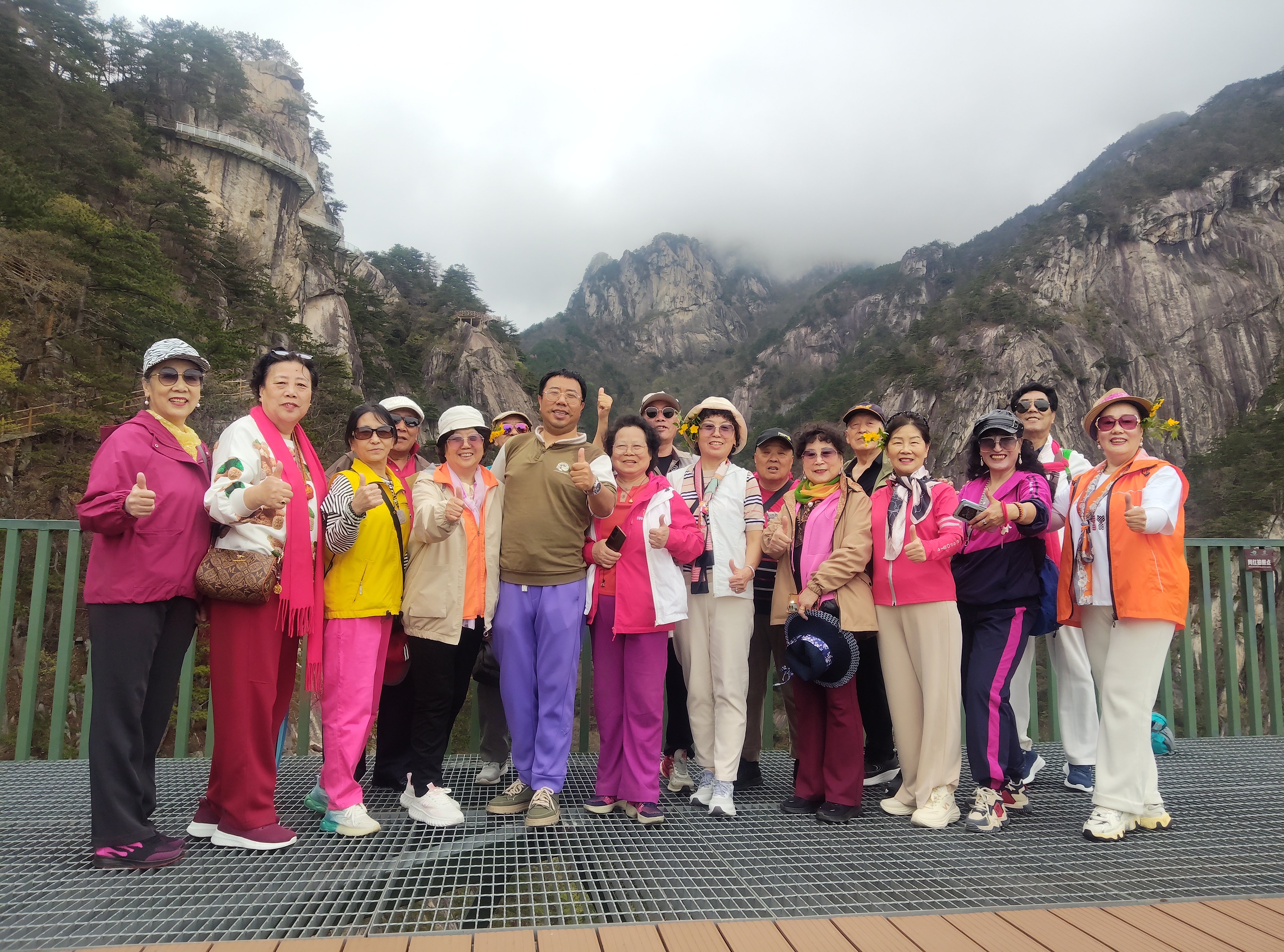 晨雾散去的那一刻,陈先生举着手机大喊:“老同学们看!大别山的云海,不输黄山!”