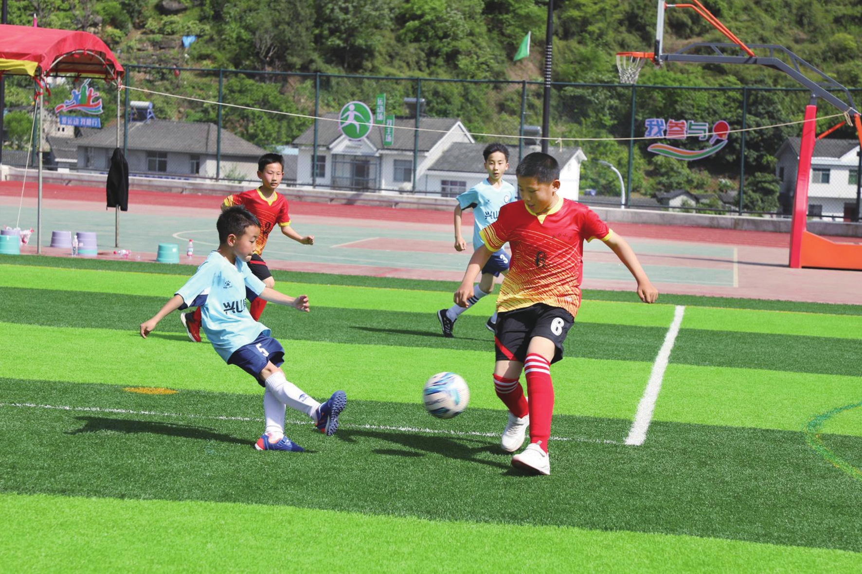 绿茵场上,小球员们带球突破、默契配合、全力拼搏,生动展现了校园体育的活力与育人价值。(记者万春风,通讯员杨安琪、乔娜娜 摄)
