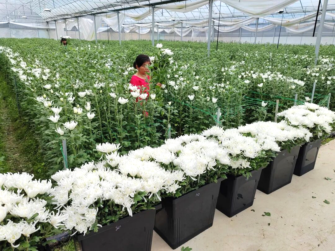 目前,180亩菊花基地稳步推进,年产鲜切菊20余万枝、药用菊干品1.2万斤,年产值突破80万元。村里还利用闲置校舍配套建成冷库和烘干厂,产业链条初步形成。
