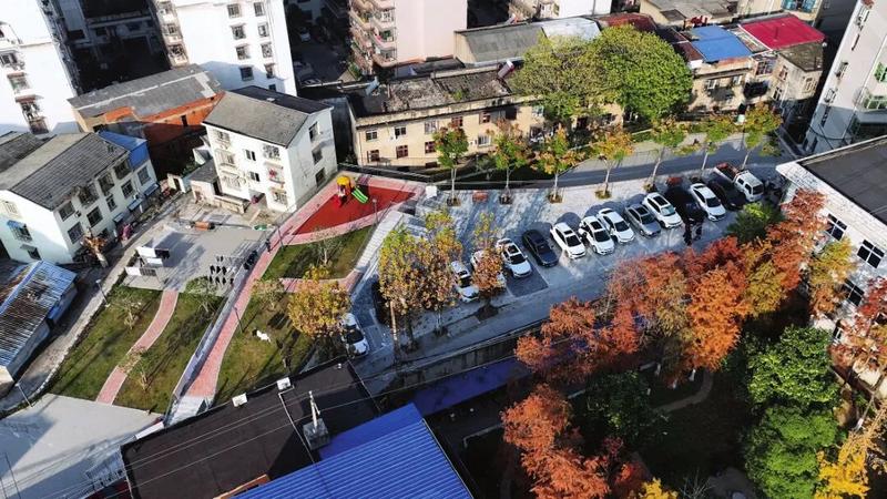 该小区建成于2002年,设施老化、停车难,一度陷入失管困境。面对居民加装电梯、增设停车位的迫切诉求,社区牵头引导、居民同心自治,自发筹款、志愿监工,最终21部加装电梯矗立楼间,630个生态停车位布局井然,老旧小区焕发新生。