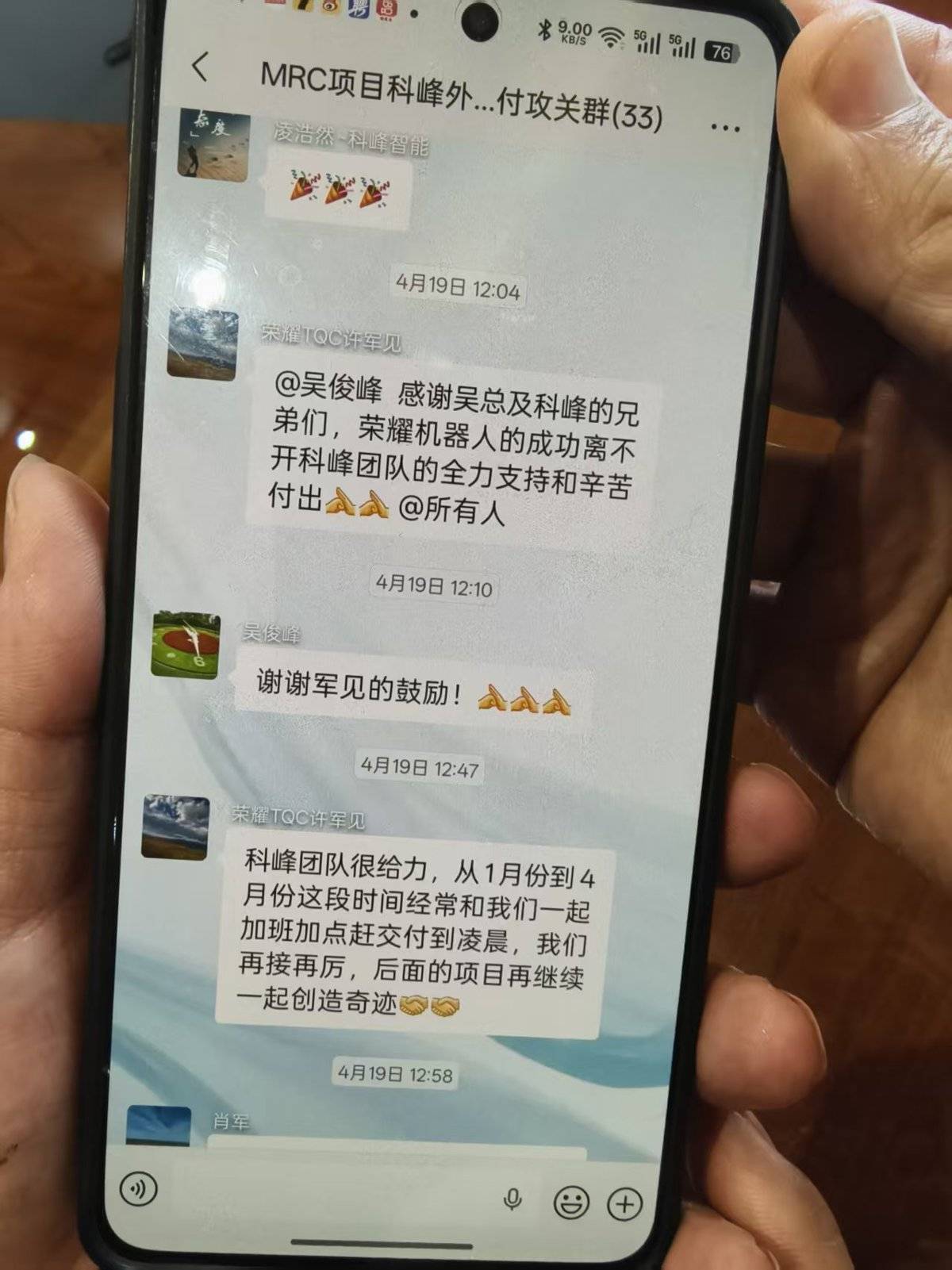比赛刚结束,双方共同组建的项目群就沸腾了。“成功离不开科峰团队的全力支持和辛苦付出!”荣耀公司采购总监许军见第一时间发出感慨。