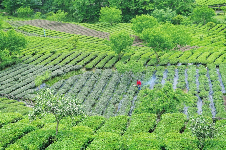 4月20日,茶农在秭归县茅坪镇松树坳村茶园里劳作。谷雨时节,多地农民抢抓农时,开展农事活动,田间地头一片忙碌景象。(通讯员王辉富 摄)