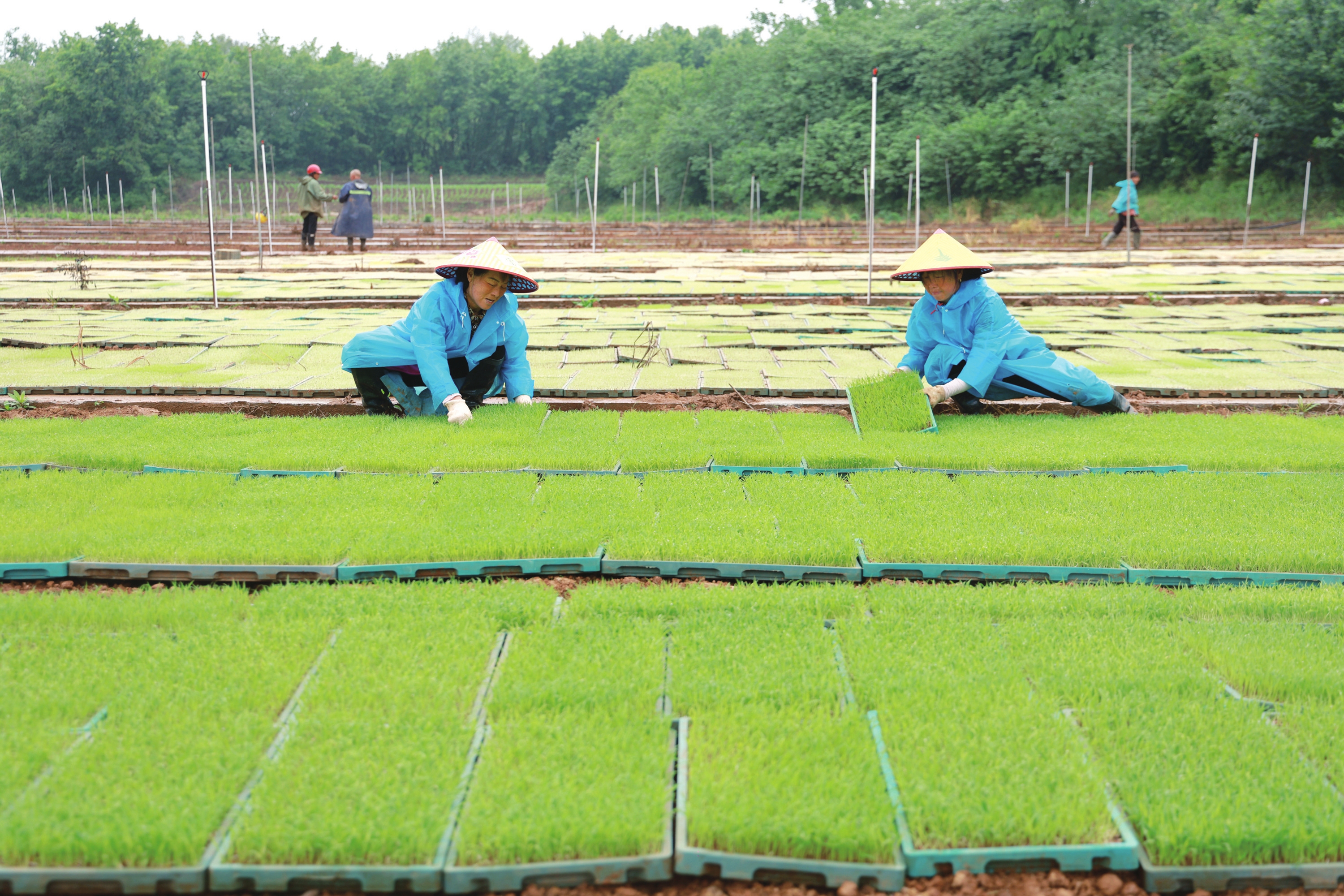 4月28日,在夷陵区鸦鹊岭镇凤凰观村水稻基地,水稻钵盘育秧工作正全面铺开。今年当地进一步扩大钵盘育秧规模,30多万盘优质秧苗预计一个月后便可大田移栽,通过精细化苗床管理与大田整理,强化田间技术指导,让传统水稻育秧迎来提质升级新变化。(记者黄翔、通讯员李伟 摄)