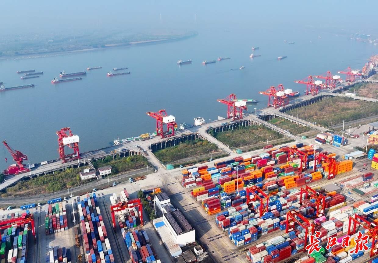 阳逻港码头一片繁忙。长江日报记者金振强 摄