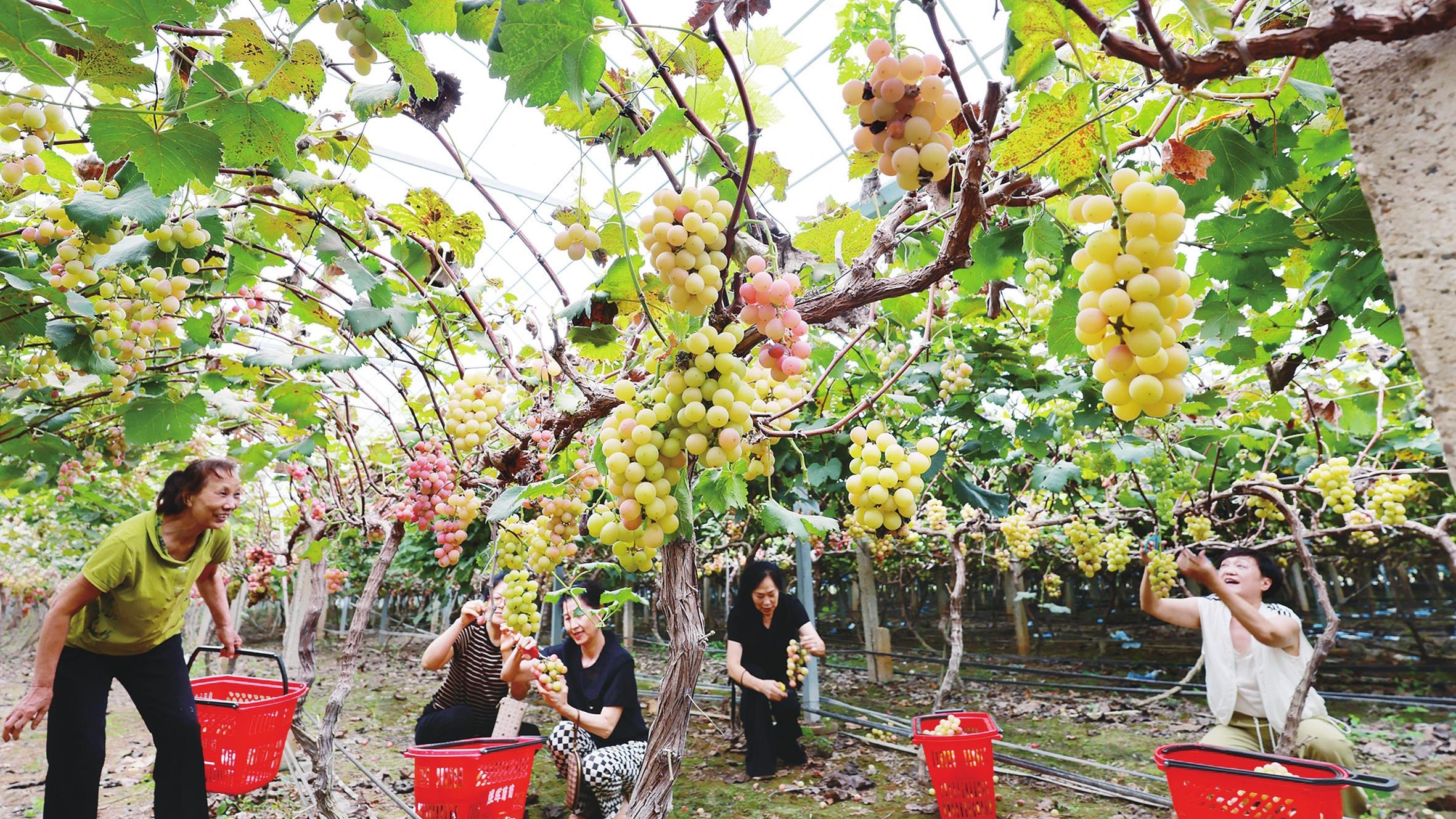 9月22日,当阳市河溶镇建国村3组一处200多亩的葡萄园里,阳光玫瑰、妮娜皇后、葡之梦等品种葡萄进入成熟期,吸引市民及游客走进果园,体验采摘的乐趣,与果农共享丰收的喜悦。