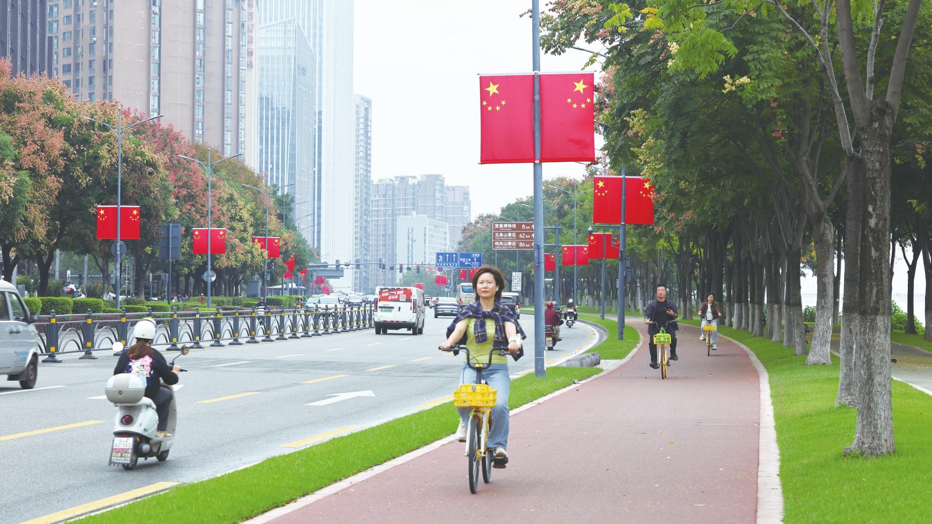9月22日,宜昌城区沿江大道,一面面五星红旗迎风招展,宛如红色长廊,营造出浓厚的节日氛围。