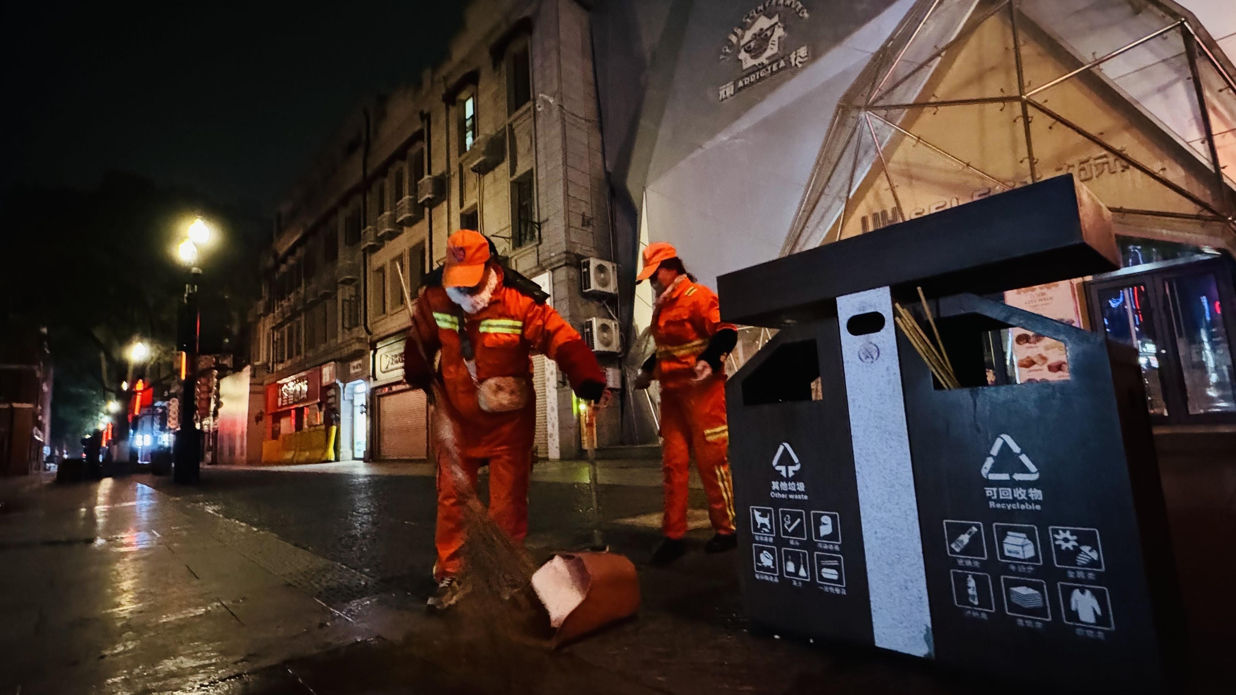大年初一凌晨4时许,当整座城市还沉浸在年味酣眠中,江汉路步行街已迎来最早的一批劳动者。