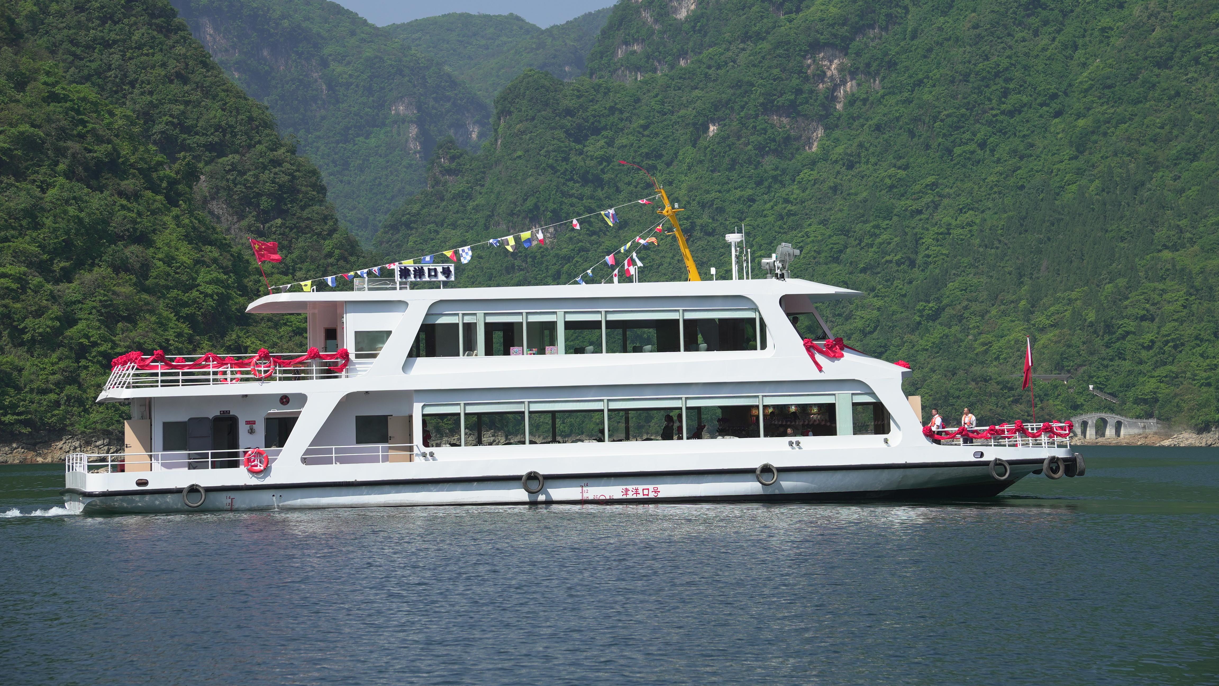 4月26日,秭归县归州镇LNG加注码头,一艘满载货物的船舶正在加注船用液化天然气。