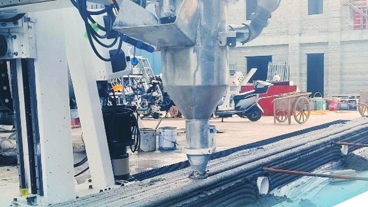 10月24日,在宜昌城市中央公园配套环道项目现场,由湖北益通建设创新研发、充注水墨和江豚元素的3D打印混凝土挡土墙正式亮相。