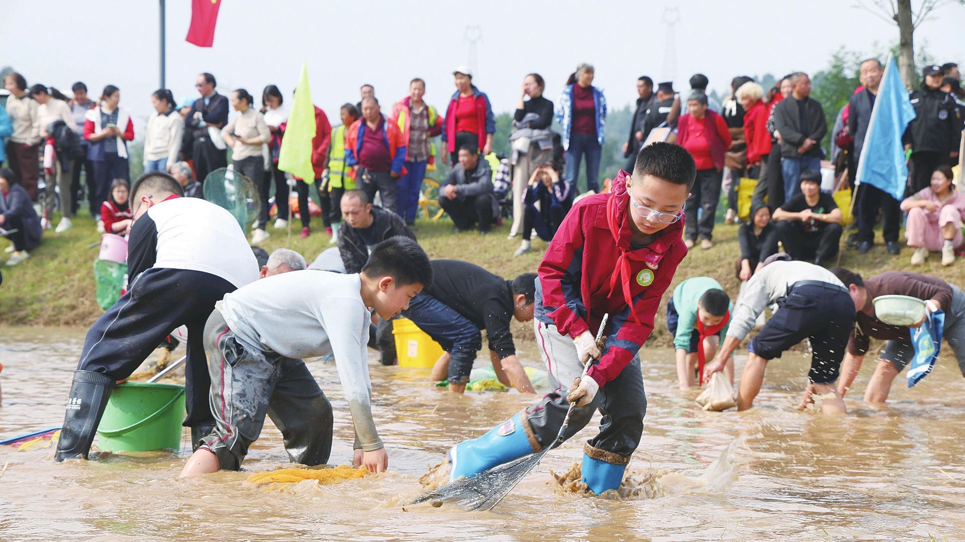 10月27日,卷桥河湿地公园秋意正浓,市民与点军区五龙小学学生携手体验秋收,在田园劳作中感受自然馈赠。