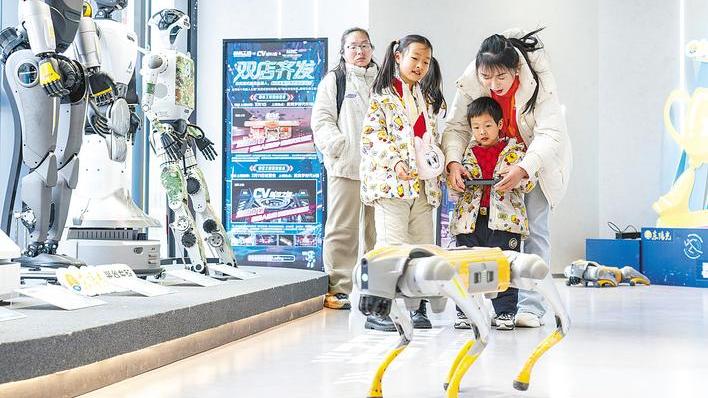 2月18日中午,湖北日报全媒记者来到位于武汉光谷的全国首家人形机器人7S店内,前来体验的市民络绎不绝。