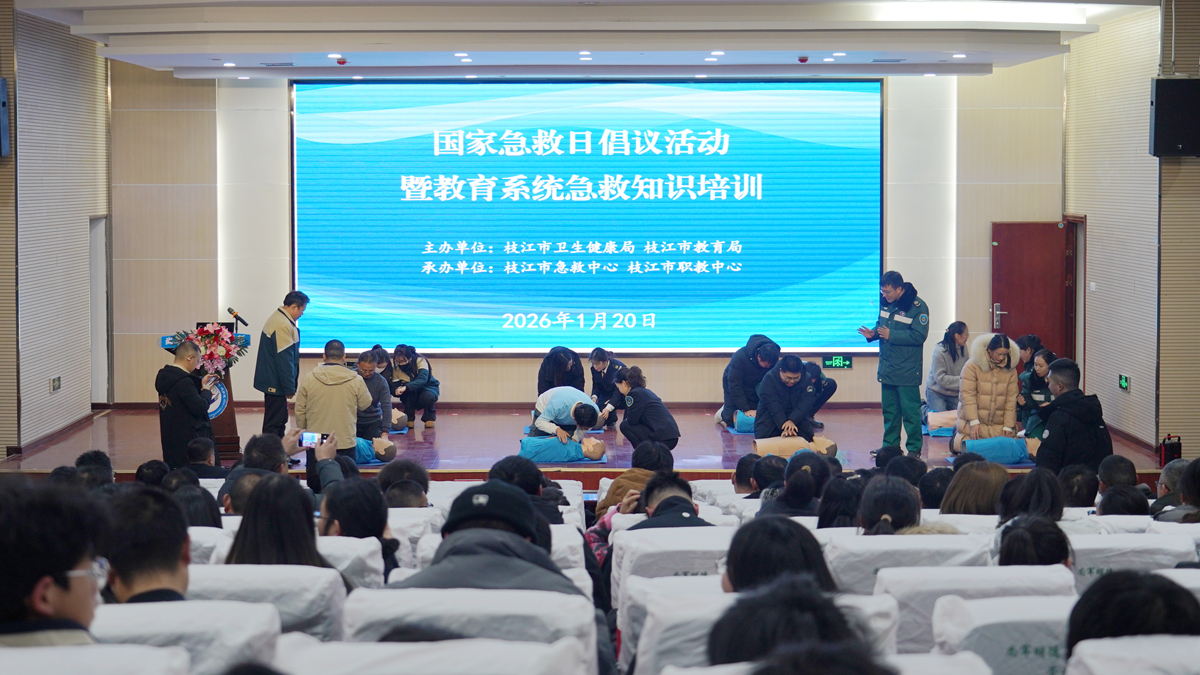 日前,枝江市卫生健康局与教育局在枝江职教中心报告厅联合举办国家急救日倡议活动暨教育系统急救知识培训。