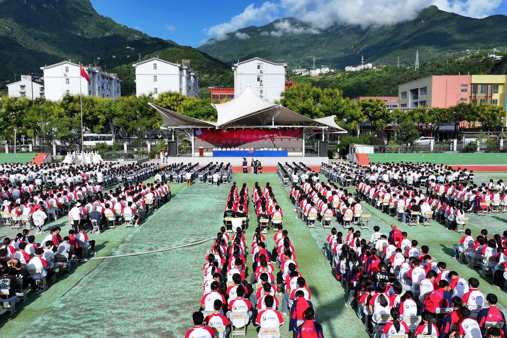9月1日上午,宜都市二中全体师生列队操场,庄严举行2025年秋季开学升旗仪式。