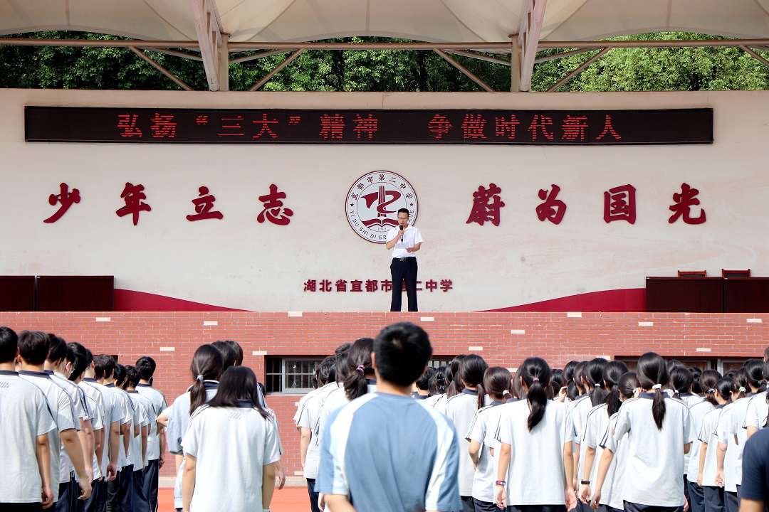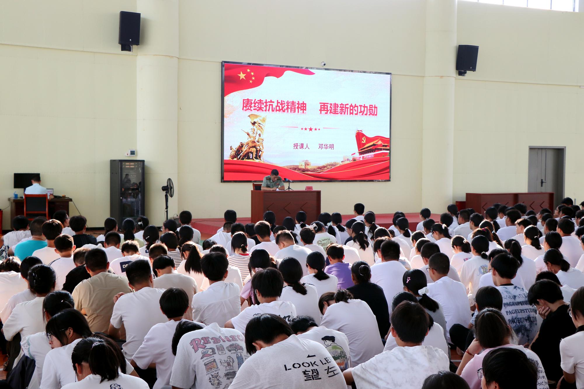 9月3日,为纪念中国人民抗日战争暨世界反法西斯战争胜利80周年,增强学生国防观念、厚植爱国情怀,宜都市二中特邀市人武部政治委员邓华明入校,为高一全体学生带来“赓续抗战精神,再建新的功勋”主题国防教育讲座。
