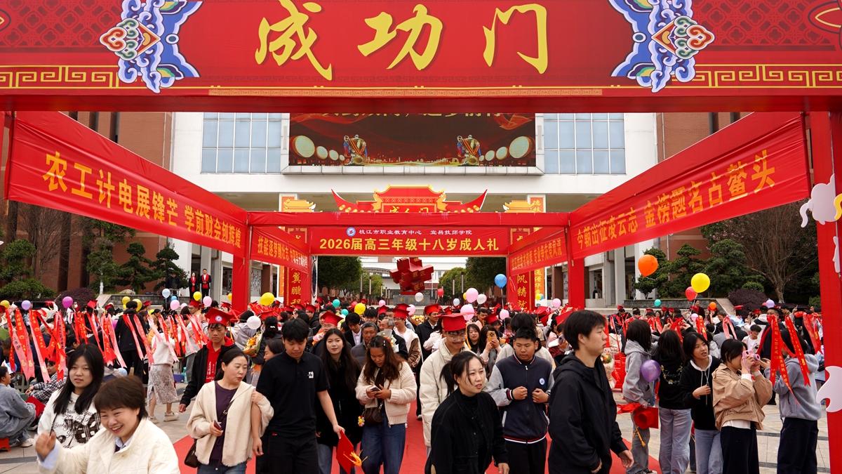 4月3日,枝江职教中心在前广场举行以“十八而志承大任 青春出征战高考”为主题的2026届高三成人礼暨出征仪式。