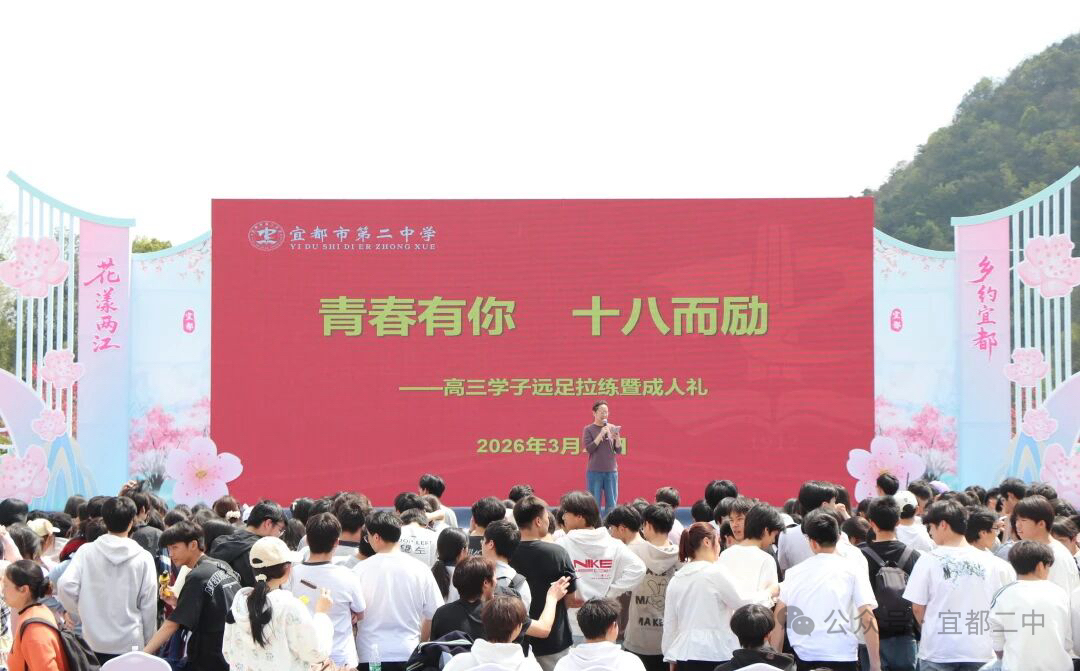 3月27日,宜都二中高一和高三年级师生共同奔赴学校旧址架锅山村,完成了一场22公里的远足拉练。