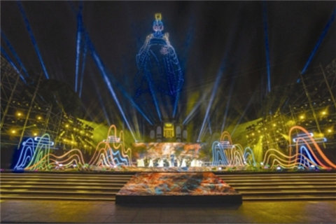 “你知道,屈原并没有离去,他将以另一种形式长存于世……”舞台上,一只浴火重生的凤凰扶摇而上,傲然俯瞰荆楚大地,气势恢宏的楚国乐舞华丽上演。[详情]