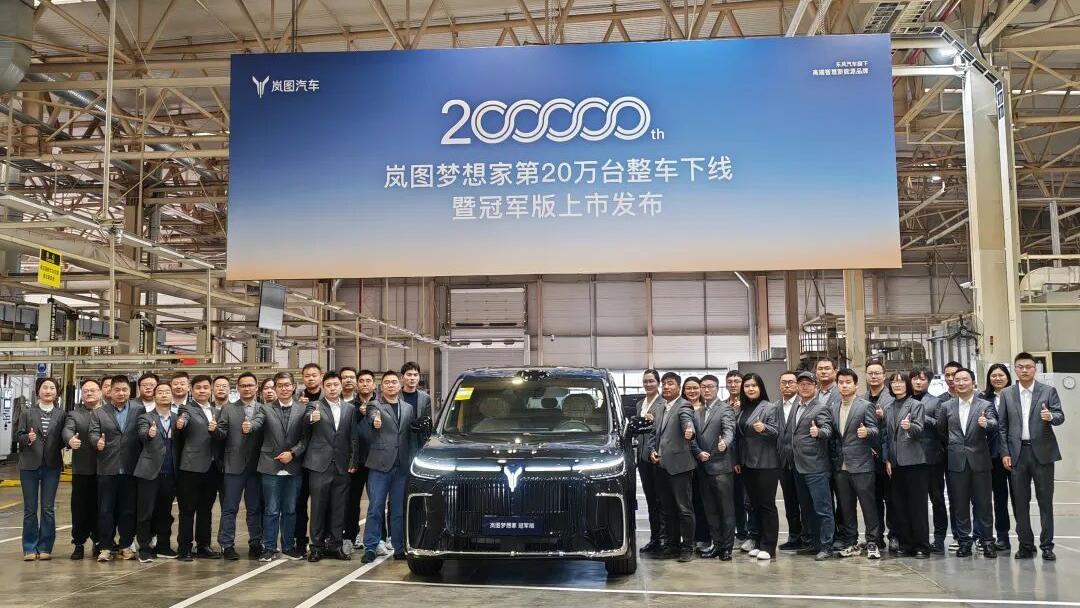 3月10日上午,在武汉经开区岚图汽车黄金工厂,岚图汽车董事长、党委书记卢放将岚图梦想家冠军版交付到岚图梦想家第20万辆车主——奥运体操冠军杨威手中,这标志着岚图梦想家第20万辆整车正式下线。