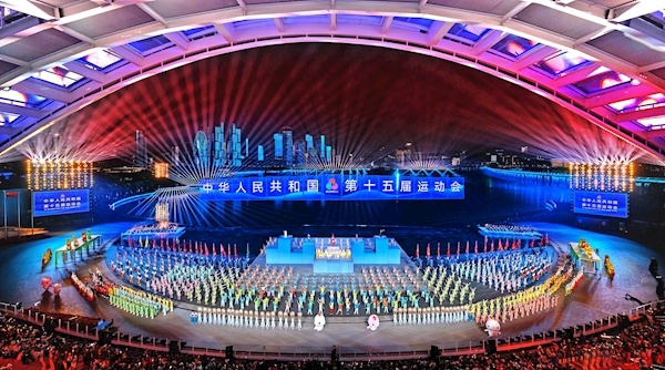 11月21日晚,第十五届全国运动会闭幕式在广东深圳前海欢乐剧场举行。
