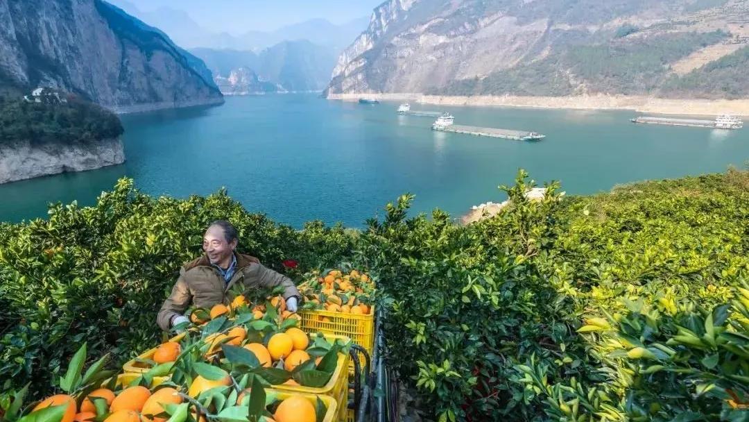 初冬时节,秭归县郭家坝镇烟灯堡村的脐橙示范园里,金黄果实挂满枝头。