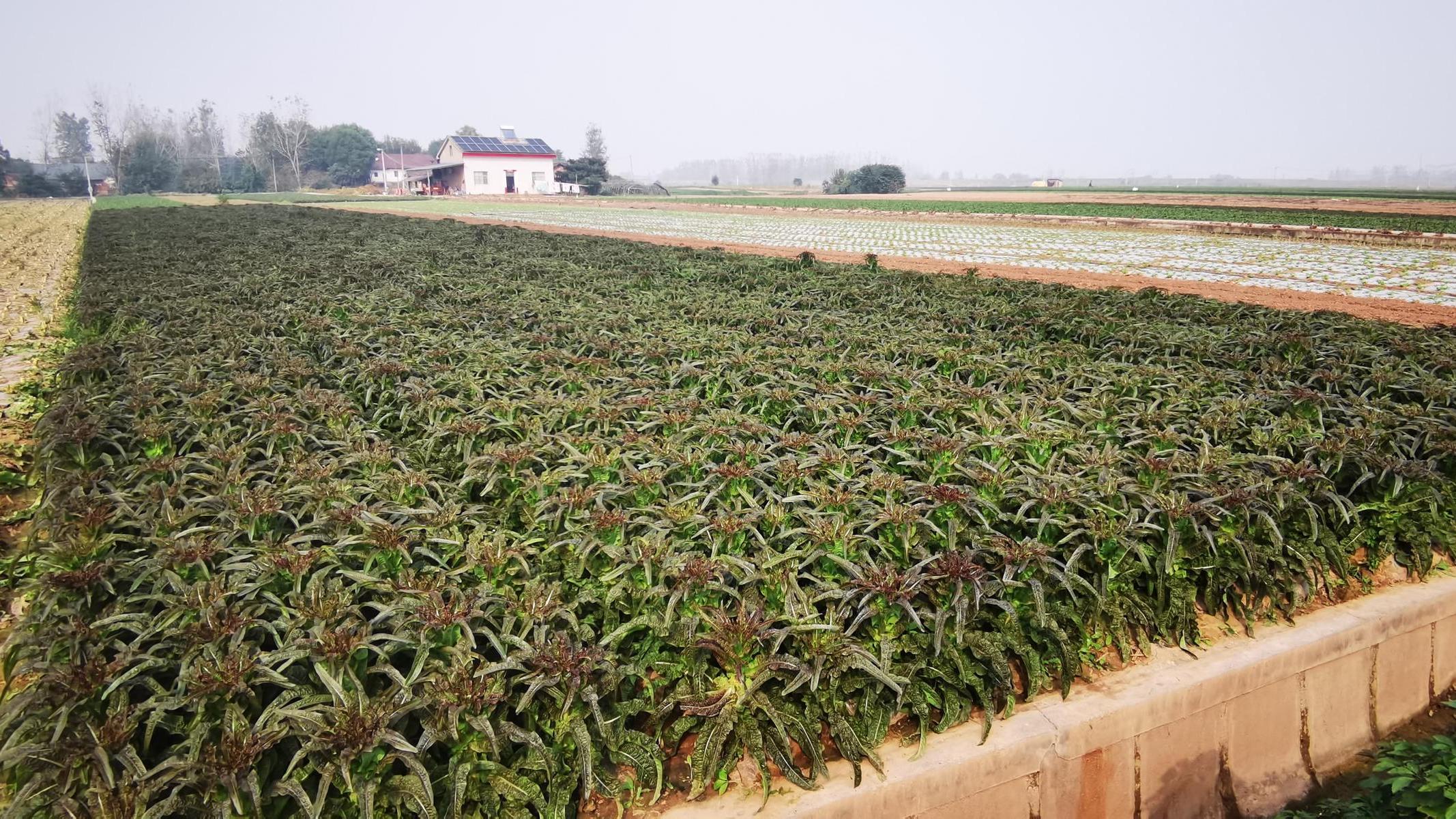 深秋的当阳市坝陵街道群益村,丰收的莴苣田绿浪翻滚。