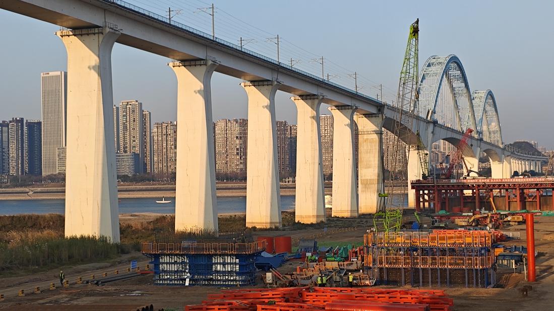 2026年1月7日,湖北枝江长江大桥施工现场繁忙有序,钢箱梁吊装作业稳步推进。