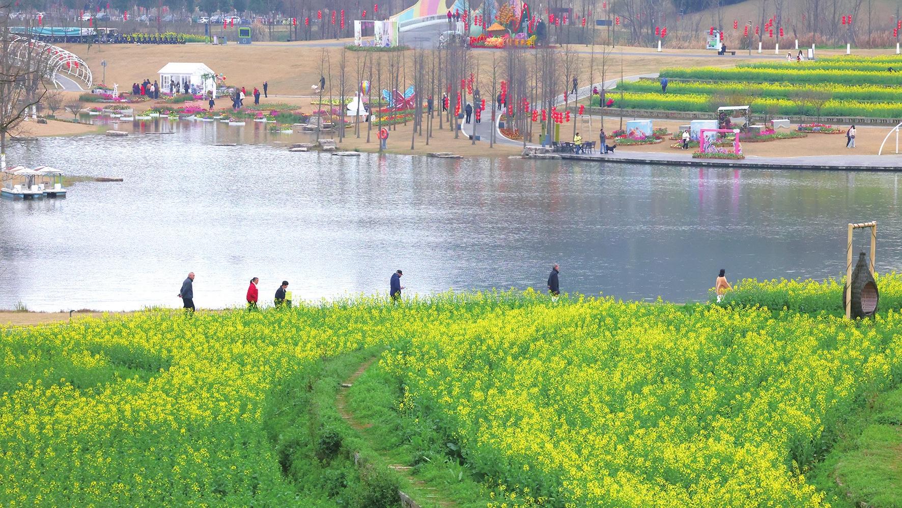 3月2日,位于点军区的卷桥河湿地油菜花盛开。