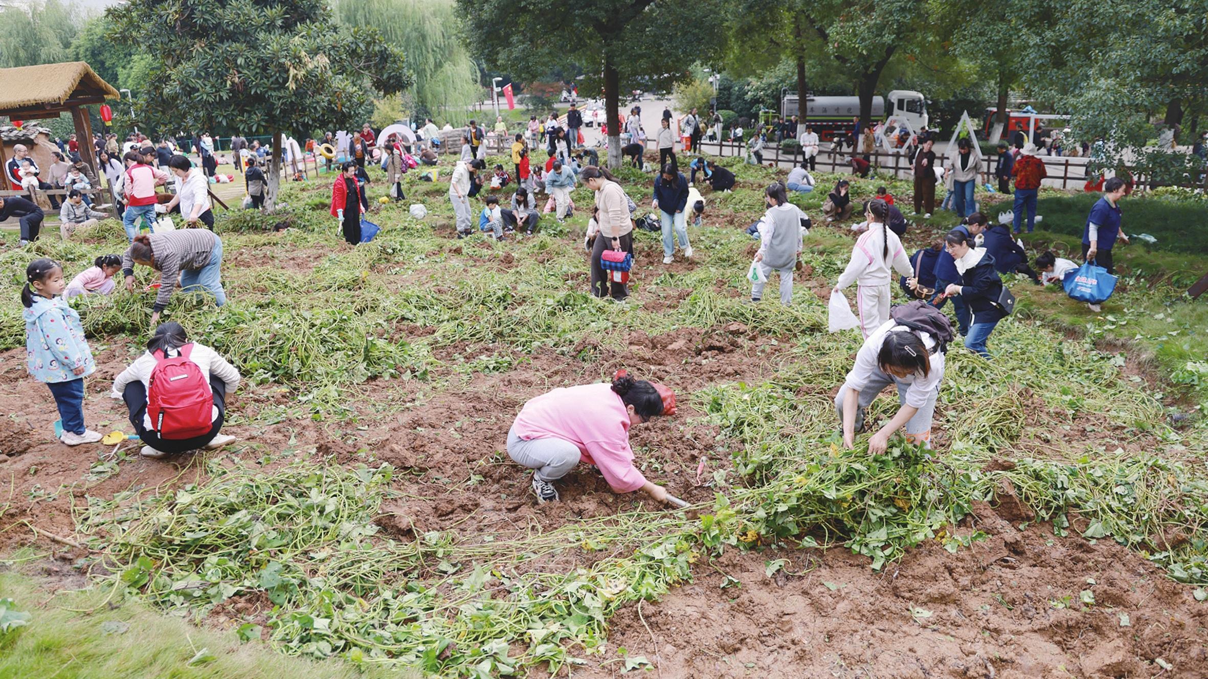 秋风送爽,薯香满田。11月1日上午,城区运河公园第二季“一日农夫”挖红薯活动在慢漫园举行。