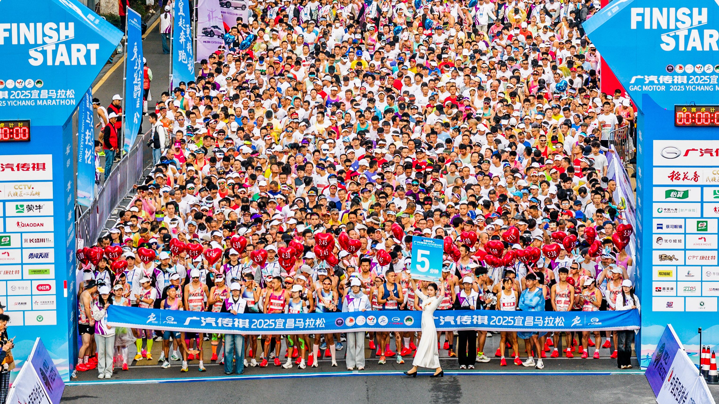 11月2日清晨,2025宜昌马拉松在滨江公园鸣枪开赛。