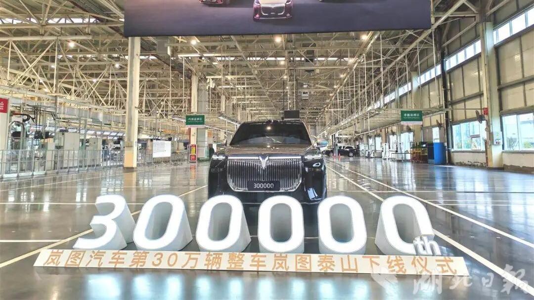 10日上午10点18分,岚图汽车第30万辆整车——一辆紫金双色的岚图泰山,在武汉经开区岚图云峰工厂总装车间缓缓驶下生产线。