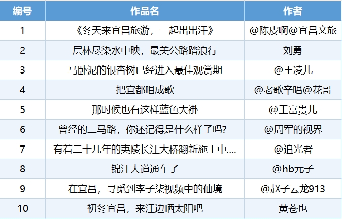 由宜昌市委网信办指导的“宜昌正能量”网络达人好作品评选(第一季)已结束,共征集到180多件作品。组委会精选22件作品进入初选环节,评选综合考虑发稿数量、阅读量、评论量和作品质量等因素,最终评选出10件获奖作品。