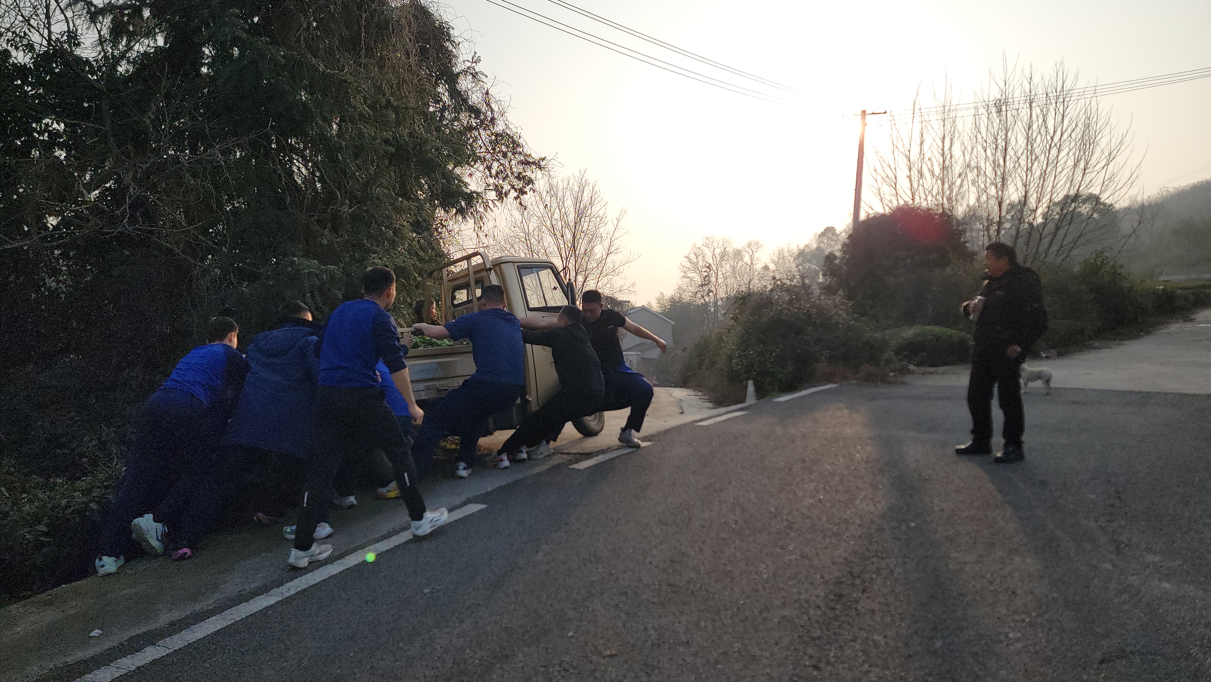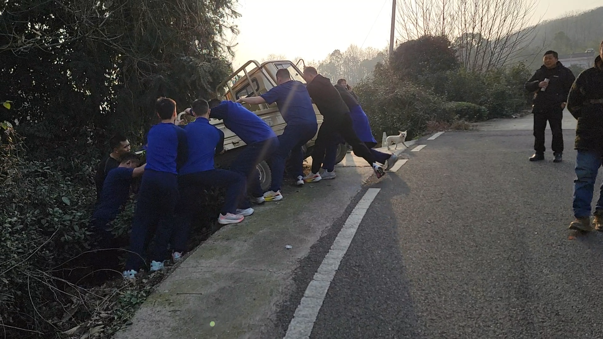 经询问三轮车车主得知,此处弯急路陡,其操作不当导致车辆斜滑至路边土坡。由于车辆过重且此处来往车辆人员稀少,单凭个人力量无法将车辆推回至道路上,正着急不知如何是好。“来,大家一起用力,帮助车主把车推上来!”经过初步判断,消防队员们从车辆后方和右侧一起用力推行,同时车主在驾驶室发动车辆辅助三轮车脱困。