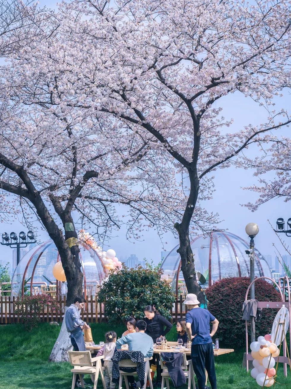 晴川假日酒店樱花树下品美食。城市摄影队 徐勤 摄