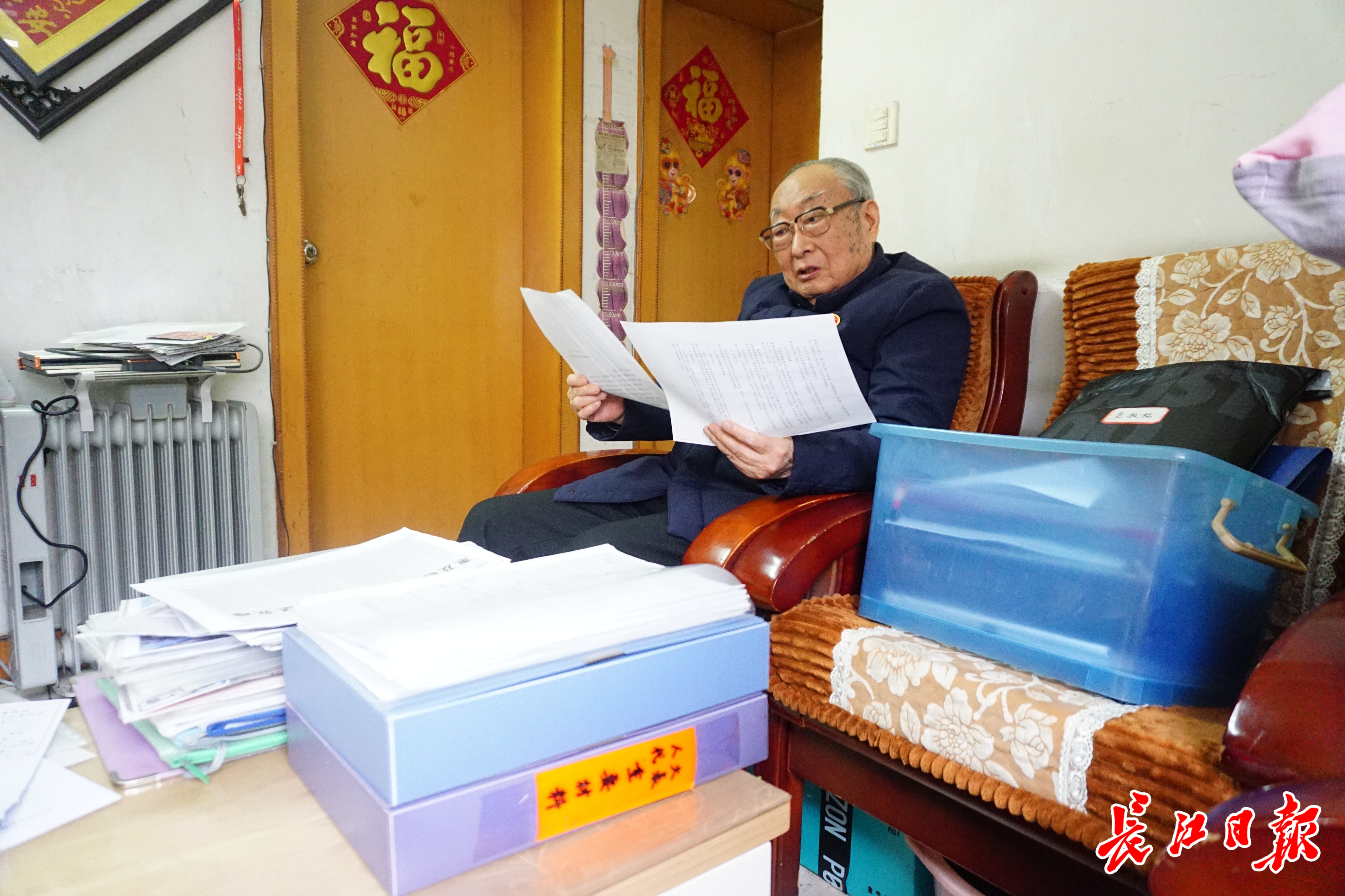 王琨履职27年,推进办成120余件民生实事,家中保存多年材料。