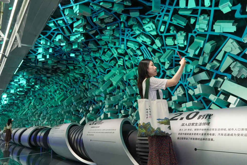2024年6月12日,游客在南京市雨花台区梅钢工业文化旅游区钢铁体验馆内参观游览。近年来,南京市不断加大整合、开发工业旅游资源力度,培育工业旅游示范企业,“工业+旅游”日渐走红。