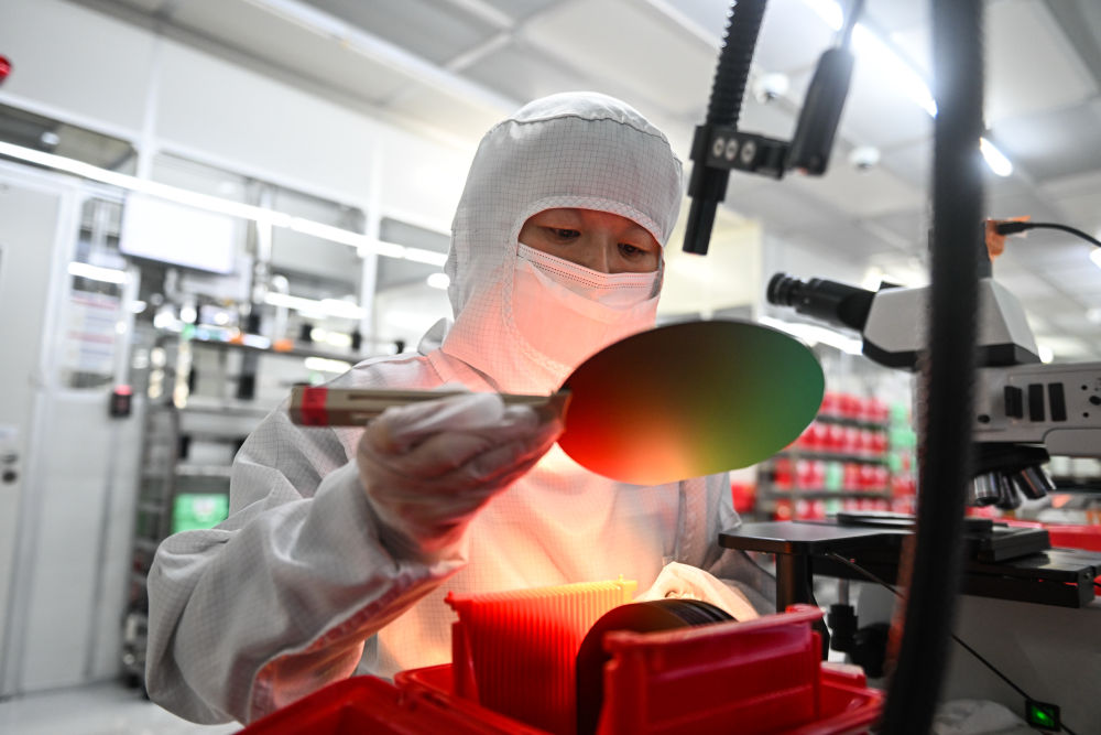 2024年11月12日,工作人员在苏州工业园区纳米产业技术研究院有限公司生产车间检查晶圆。近年来,苏州工业园区加快构建重点产业集群和产业链,发力生物医药及大健康、纳米技术应用及新材料等新兴产业,多个项目入选国家先进制造业集群。