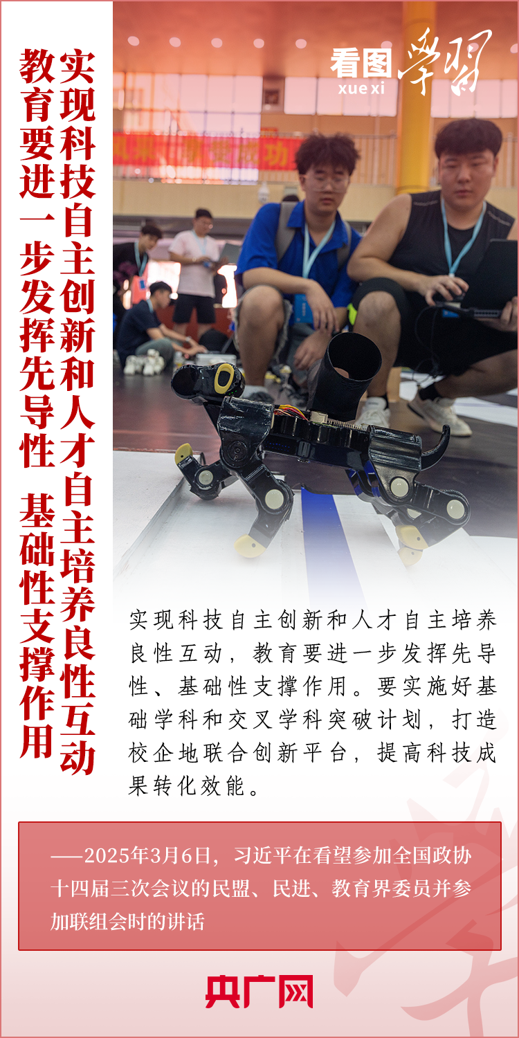 “建设教育强国、科技强国、人才强国,是全党全社会的共同责任。”3月6日,习近平总书记在看望参加全国政协十四届三次会议的民盟、民进、教育界委员并参加联组会时发表重要讲话。总书记就做好教育、科技、人才工作作出深刻阐释,强调必须深刻把握中国式现代化对教育、科技、人才的需求,强化教育对科技和人才的支撑作用,进一步形成人才辈出、人尽其才、才尽其用的生动局面。一起来学习!