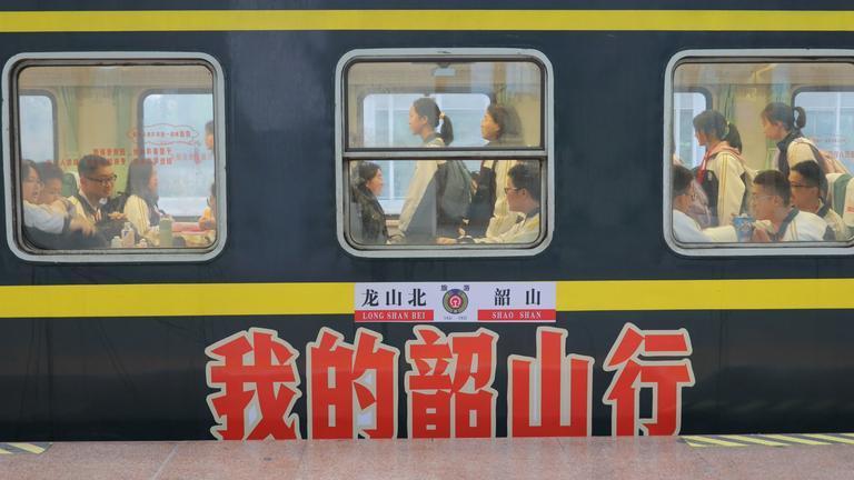 △湖南龙山县青年学子乘坐红色研学专列。
