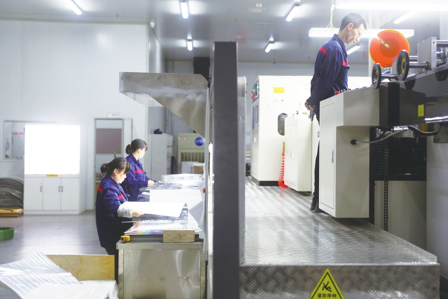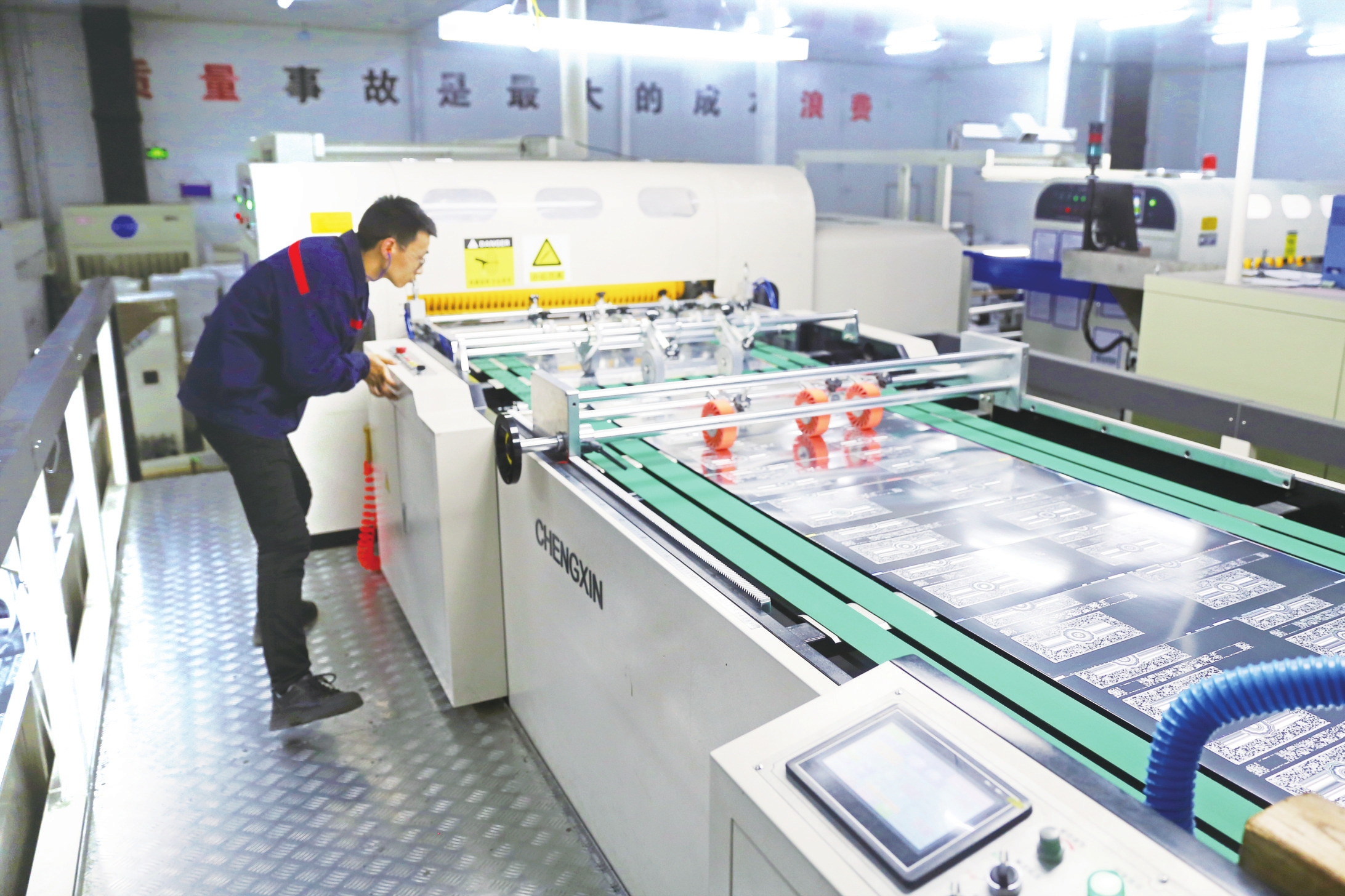 近日,宜美特全息科技有限公司内一片繁忙,一卷卷带有科技光泽的光刻纸,正经过蚀刻、压制、覆膜等精密工序不断下线。当下,夷陵区的工业企业生产呈现出一派热火朝天的景象。各企业争分夺秒,鼓足干劲忙生产、赶订单,全力推进生产进度。(通讯员刘一鸣 摄)