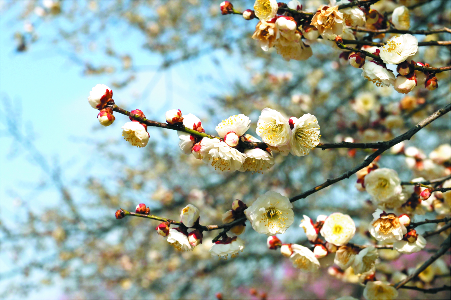 据了解,恒荣梅园总面积约460亩,园内有各类景观树约3万株,以梅花为主,有宫粉、玉蝶、朱砂、绿萼等165个品种,共2.3万株,是江汉平原首个以梅花为主题的乡村观光园。