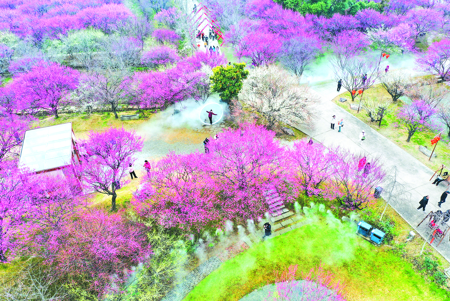2月20日,阳光正好,荆州区八岭山镇的恒荣梅园内,阵阵沁人心脾的花香扑面而来,竞相绽放的梅花将园区渲染成粉色的花海,美如仙境,吸引不少游客前来打卡游玩。