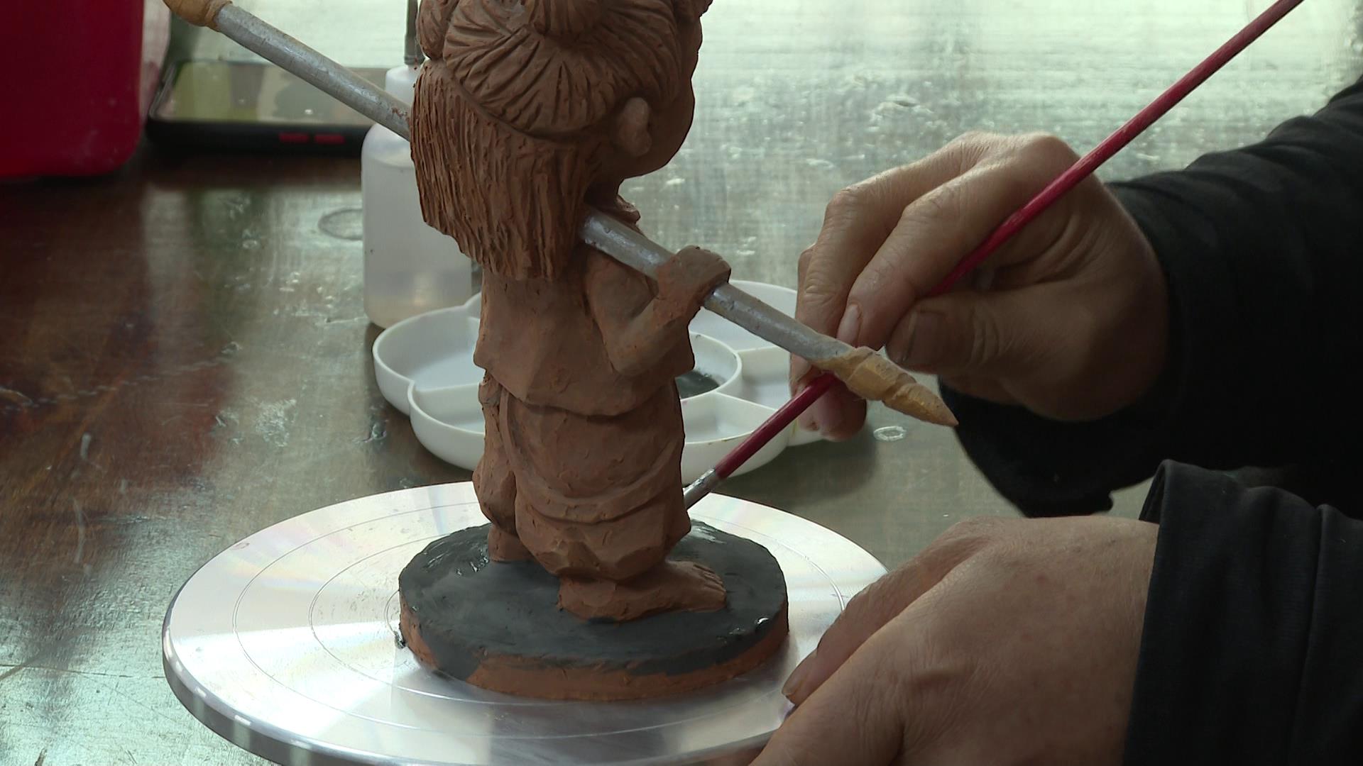 廖喜焱与善溪泥塑的缘分,还要从他的父亲说起。“我父亲原来是做厨师的,他在做菜的过程中会对菜进行雕刻。我对雕刻方面的兴趣,就是受父亲的影响。”偶然的一个机会,儿时的廖喜焱参加了一场美术竞赛,在父亲的指导下制作的泥塑作品斩获了头等奖,从此开启了他与泥塑的不解之缘。