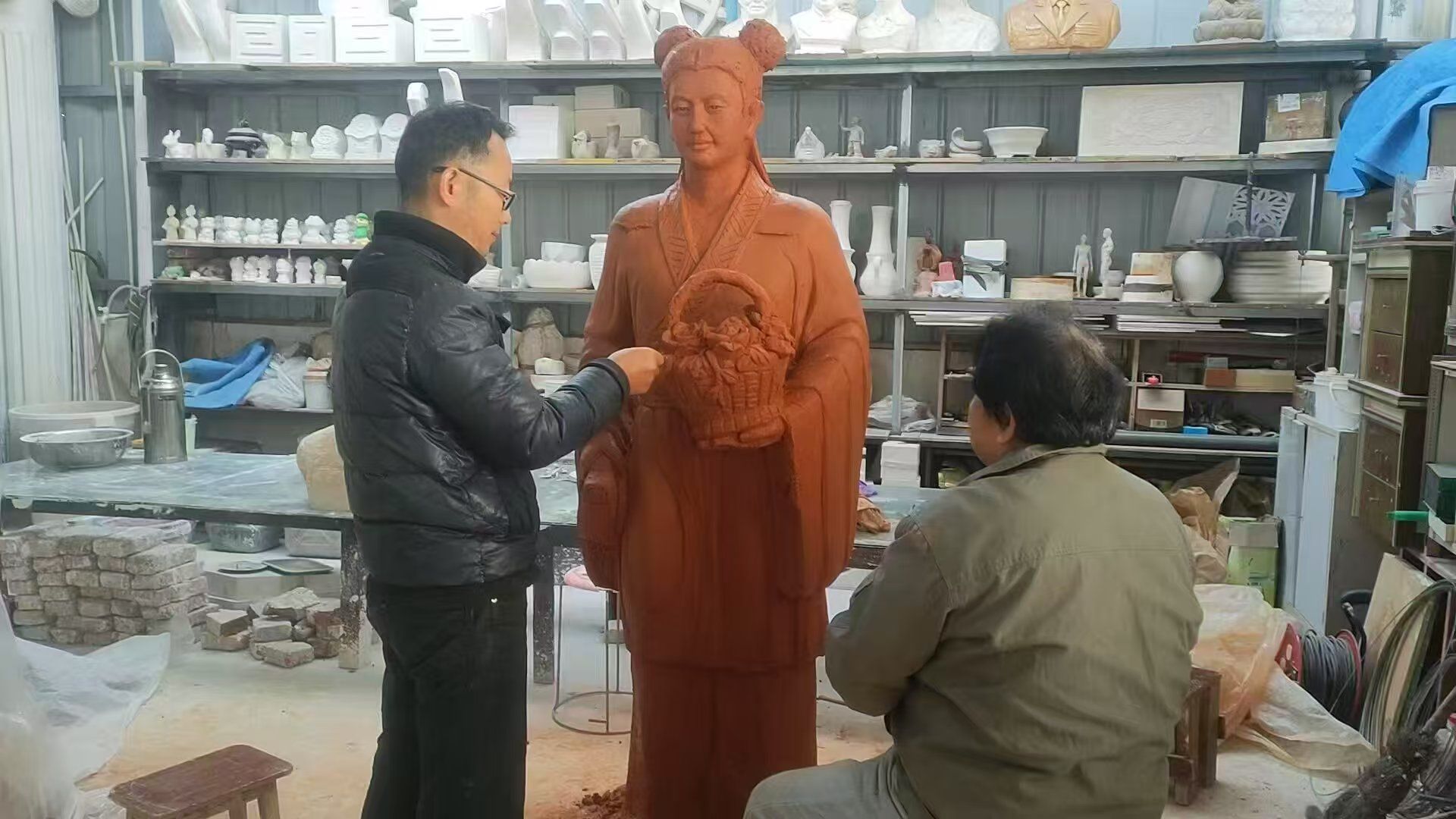 2024年8月,廖喜焱创办了善溪土陶泥塑坊。这不仅是他的创作基地,更是传承善溪泥塑的重要场所。谈及创办初衷,他表示:“我一直从事泥塑创作,在枝江这个领域还比较空白。去年善溪泥塑申报(枝江市第四批非物质文化遗产)成功,我就想借这个机会,把陶艺和泥塑结合起来,办个泥塑坊。”依托这一场所,他积极开展非遗体验活动,让更多人领略到了善溪泥塑这一传统技艺的魅力。