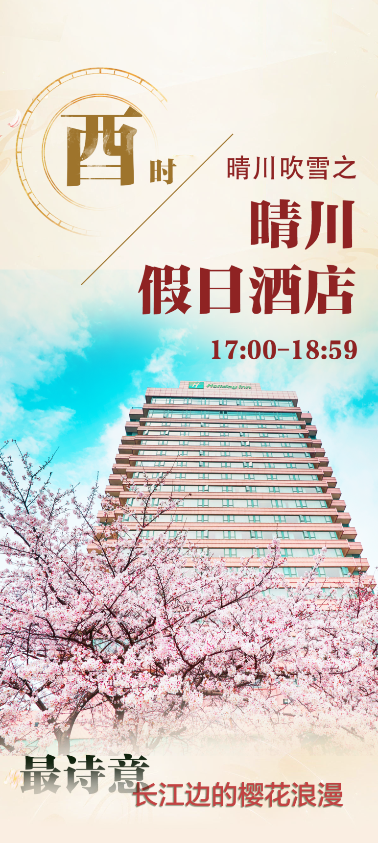 在这里,能赏到临江而生的樱花花瓣“飘满”万里长江第一桥的独特场景。每到春季,酒店后花园的50多棵樱花树开得情意绵绵,充满汉味浪漫情怀。